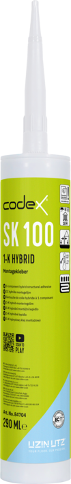 Der gebrauchsfertige Dicht- und Montagekleber codex SK 100 überzeugt mit überlegener Haftung bei schwierigsten Bedingungen. Als 1-komponentiger Hybrid-Kleber verklebt er zuverlässig und wasserdicht Abdichtungsbahnen und Dichtbänder. Höchste Klebekraft verspricht der codex Kleber SK 100 auf sämtlichen Materialien: von Fliesen über Holzleisten bis hin zu Metall und Vliesgewebe.