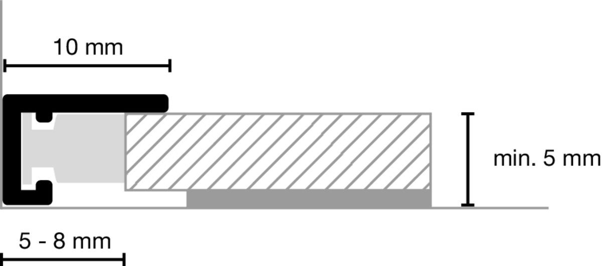 Das Abschlussprofil minileiste AL10X5 stellt einen dezenten und innovativen Abschluss von Bodenbelag zu Wand, Fenster(rahmen) oder Treppenstufe her – dort, wo Anschluss- und Dehnfugen bautechnisch eingehalten werden müssen.