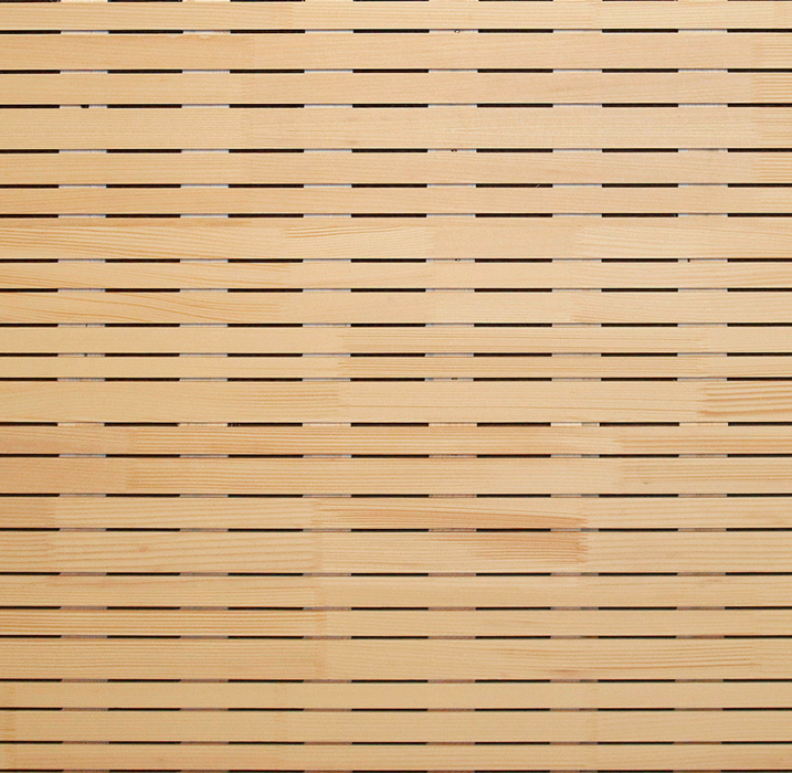 Die Admonter Acoustics Geo ist eine Akustikplatte mit regelmäßiger (16-16/12) oder unregelmäßiger (20-40/07) Schlitz-Geometrie und integriertem Absorber aus Holzweichfaser. Das geringe Flächengewicht und die einfacher Montage zeichnen dieses Produkt aus. Umlaufend biete die Geo ein Nut & Feder Profil zur Endlosverlegung.