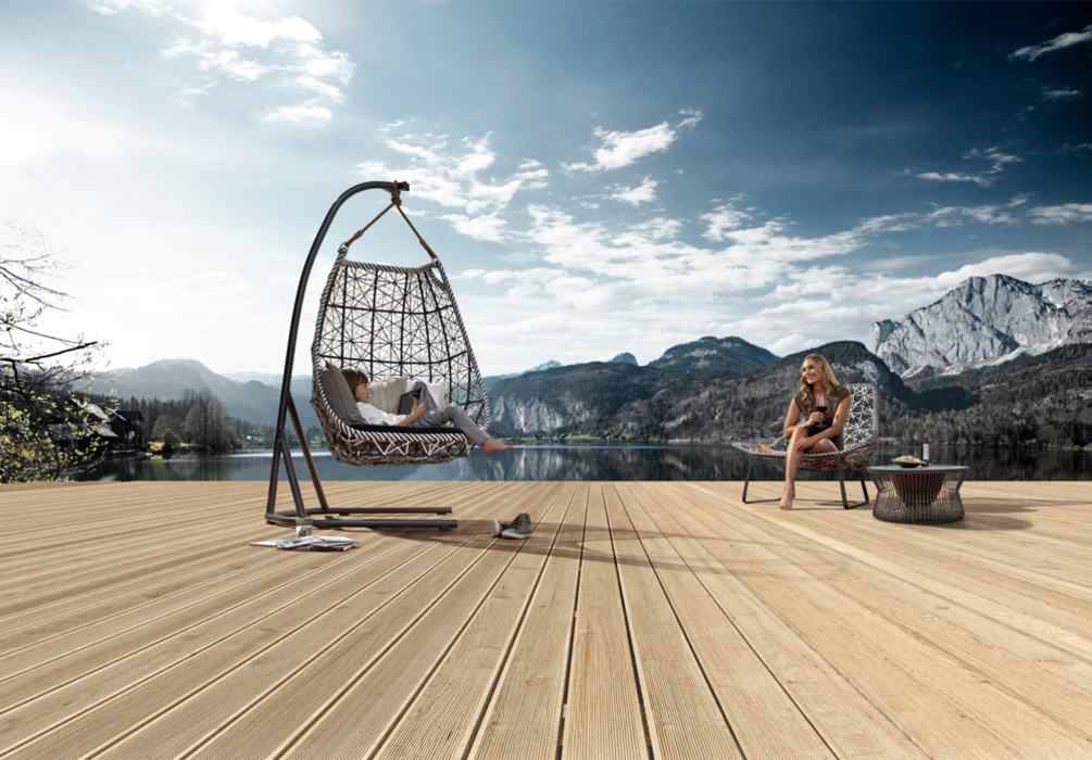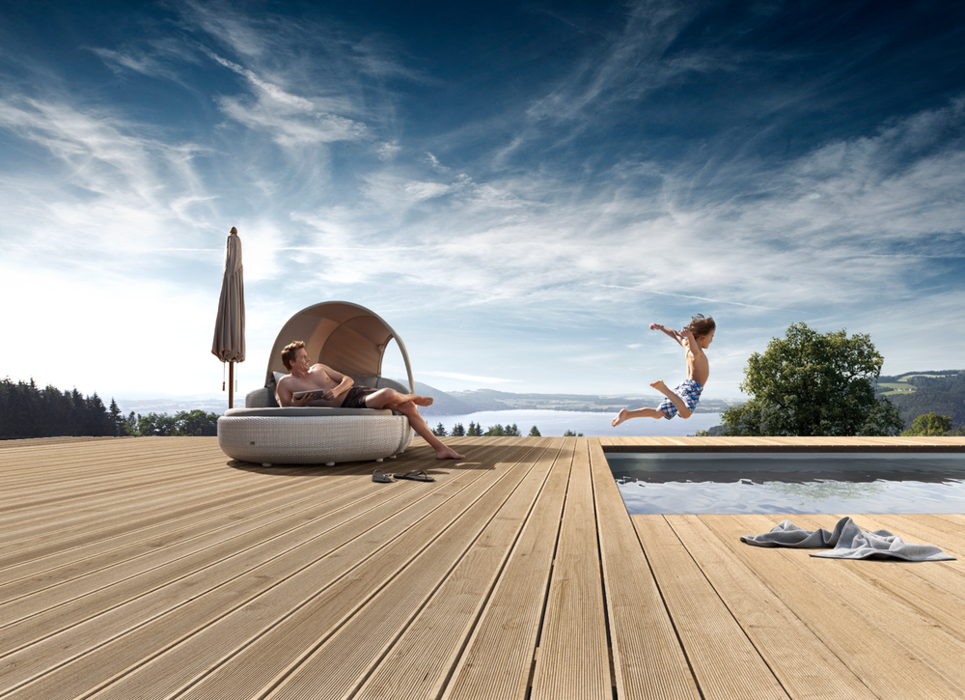 Ein besonderes Kennzeichen der Lärche, die bis zu 40 Meter hoch wächst, ist ihr hoher Harzgehalt, der für den charakteristischen Holzduft und zum Teil auch für die hohe Witterungsbeständigkeit dieses Terrassenholzes verantwortlich ist. Das dauerhafte Nadelholz hält den Launen des Wetters von Natur aus über Jahre stand.