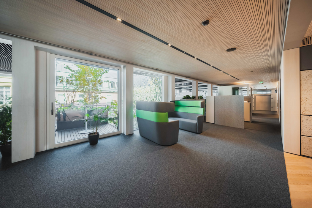 Mitten in Innsbruck entstand ein Neubau, der Offenheit, Ruhe und natürliche Materialien miteinander verbindet. Die durchgängigen Akustikdecken aus Weißtanne prägen die Atmosphäre und schaffen in den transparenten, offen organisierten Arbeitswelten eine überraschend sanfte akustische Grundlage. Die passenden Produkte lieferte JAF Kramsach.