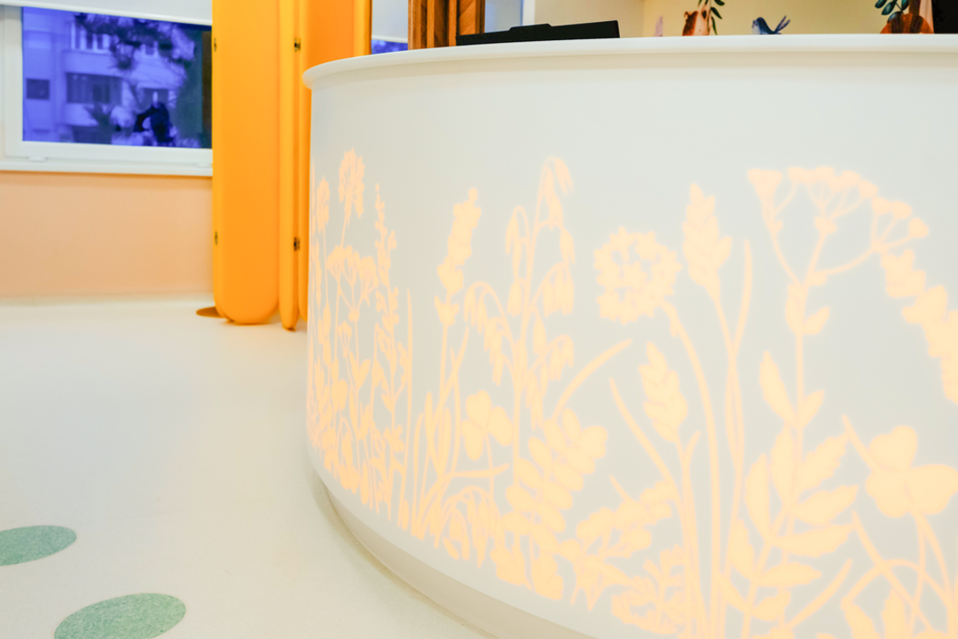 Licht, Wärme und eine spürbare Leichtigkeit prägen heute den Eingangsbereich des Mental Health Centers im Kinderkrankenhaus von Pitești in Rumänien. Was einst als funktionaler, eher nüchterner Empfangsraum angelegt war, wurde zu einem Ort weiterentwickelt, der Sicherheit vermittelt und Orientierung gibt. Holver lieferte die passenden Materialien.