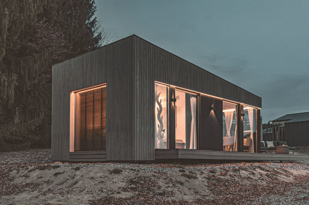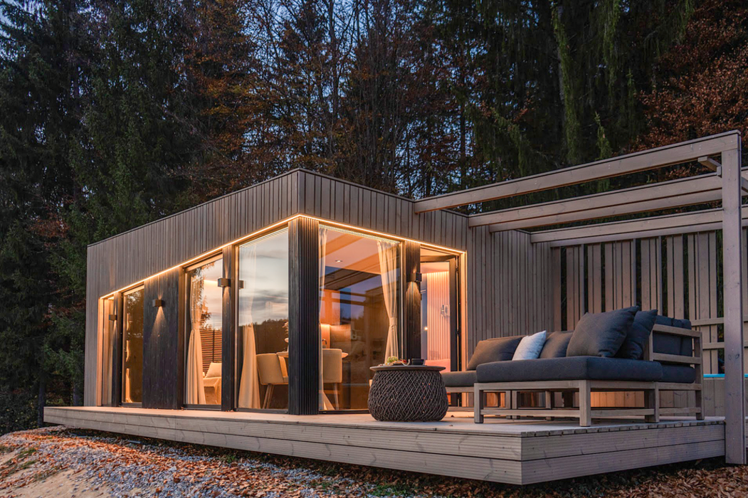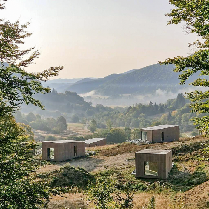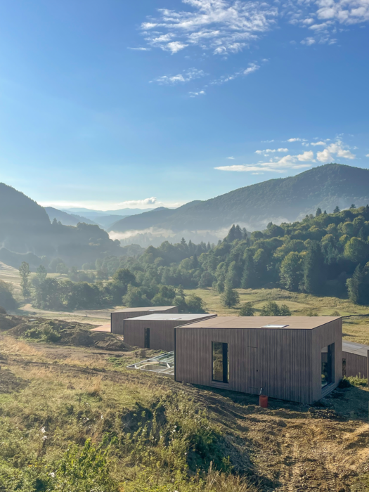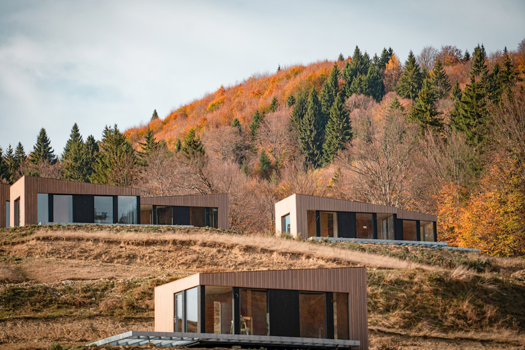 Die Anlage aus Ferienhäusern folgt der Idee, moderne Bauweise sensibel in die alpine Umgebung zu integrieren – getragen von einem klaren Fokus Energieeffizienz und natürlicher Materialität. Die Umsetzung verbindet präzise Planung mit handwerklicher Kompetenz: Gemeinsam realisierten Holver Romania und MAAD PREFAB SRL, spezialisiert auf vorgefertigten Holzbau, ein Konzept, das sowohl gestalterisch als auch technisch überzeugt. Im Zentrum steht dabei der konsequente Einsatz thermisch modifizierter Hölzer, die den hohen Anforderungen eines ganzjährig genutzten Resorts gerecht werden.