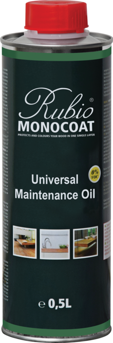 Das Rubio MONOCOAT Universal Maintenance Oil ist ein universelles Pflegeöl, welches für die Auffrischung und Erneuerung von geölten Holzoberflächen entwickelt wurde. Es eignet sich besonders für stark beanspruchte Bereiche, wie Tische, Küchen oder Flächen im öffentlichen Bereich wie Büros, Restaurants oder Hotels. Die Behandlungshäufigkeit ist von dem Abnutzungsgrad abhängig. Idealerweise sollte der Boden vor dem Verblassen der Farbe behandelt werden.