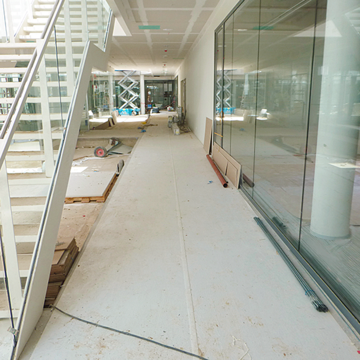 Folienseite nach oben, rutschhemmende Vliesseite - selbsthaftend - nach unten. Abdeckvlies bahnenweise verlegen mit einer Überlappung von ca. 10 cm. Nahtstellen gut andrücken. Für die mehrfache Anwendung des Abdeckvlies darf dieses nicht verschmutzt oder beschädigt sein.