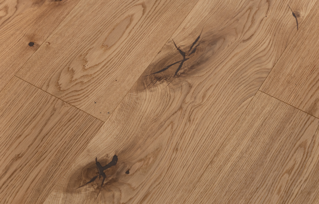 Landhausdiele Eiche Country 4-seitig gefast, gebürstet, matt lackiert, braun gekittet, FSC 100 %