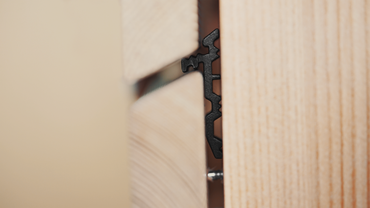 Der Distanzhalter FUGO ist die perfekte Ergänzung für sichtbar verschraubte Parallelogramm- bzw. Rhombusleisten aus Holz oder holzähnlichen Werkstoffen.