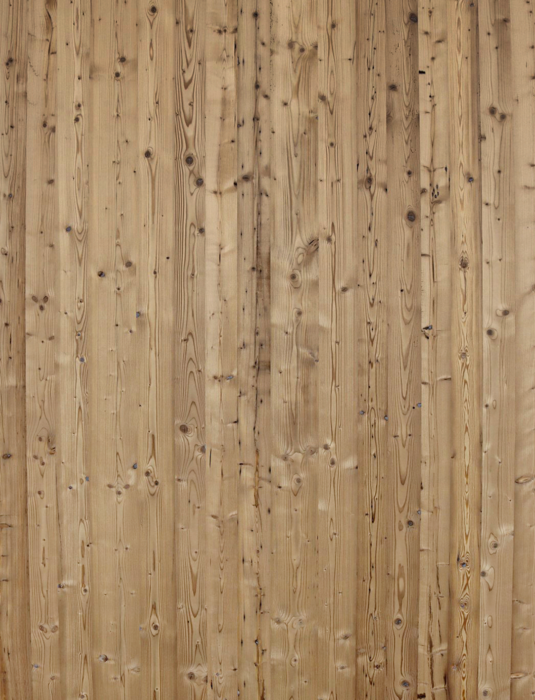Ausgeprägtes und kräftiges Holzbild, gesunde und schwarze Äste zulässig, Astlöcher mit Naturastdübeln ausgebessert, kleine Ausbrüche abhängig vom Erscheinungsbild ausgefertigt, Harzgallen zulässig, altersbedingte Farbunterschiede zulässig; unregelmäßige Wurmstichigkeit, Risse, Nagellöcher, mechanische Beschädigungen und Farbunterschiede sind ein besonderes Merkmal. Lamellen fugendicht gelegt.