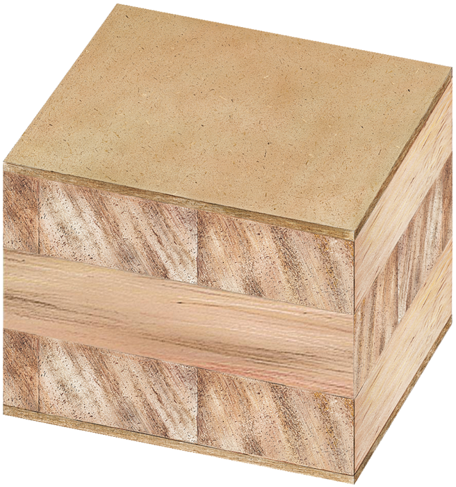kreuzweise verleimte Mittellagen aus Fichte, Pappel oder leichtem Albasia