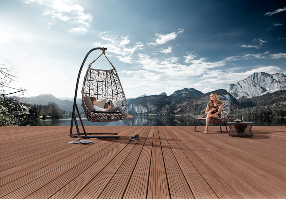 Die Cumaru-Terrassendiele präsentiert sich weitgehend astfrei und besitzt eine matte, schoko- bis rotbraune Färbung. Sie ist von einer dichten, wellenartigen Zeichnung durchzogen. Durch die unterschiedliche Hell-Dunkel-Schattierung der einzelnen Dielen ergibt sich ein lebendiges und dennoch farblich harmonisches Terrassenbild. Die feine und gleichmäßige Textur von Cumaru Terrassendielen fühlt sich an der Oberfläche glatt und angenehm an.