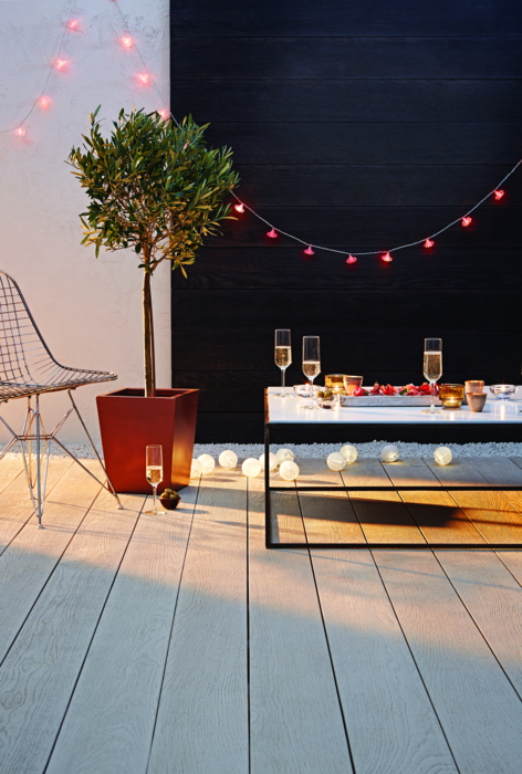 Inspiriert von der Natur, entwickelt und produziert in Großbritannien, entstehen handgefertigte Terrassendielen mit dem Charm von echtem Holz. Möglich macht das ein hochwertiger Mineralfaserverbundstoff und eine nahezu wartungsfreie Oberflächenbeschichtung aus gummiartigem Kunststoff. Durch den geschäumten, glasfaserverstärkten Kunststoffkern (RMC genannt) erhält das Produkte seine Stabilität und Haltbarkeit. Die integrierte Lastane®- Oberflächenschicht sorgt hingegen für eine schmutzabweisende, splitterfreie und weitgehend kratzfeste Oberfläche. Auch gegen Algenbewuchs, Pilze und Insekten hält das Material stand und bietet bei Nässe als auch im trockenen Zustand eine hohe Rutschfestigkeit.