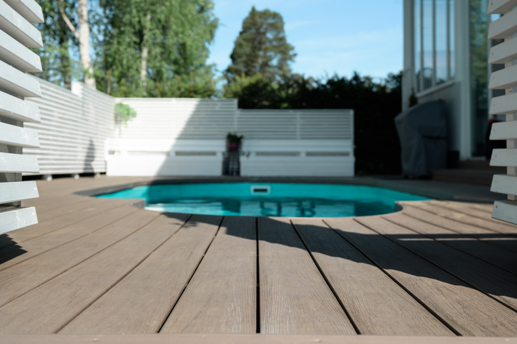 Die WPC-Terrassendielen Piazza One überzeugen nicht nur mit einer ansprechenden Optik, sondern auch mit starken technischen Eigenschaften. Ein besonders beständiger Kern erlaubt eine Verlegung mit direktem Bodenkontakt. Neben dem Kern verfügen die Dielen über eine Oberfläche, die mit leistungsstarken Polymeren beschichtet wurde. Diese Art der Beschichtung sorgt einerseits dafür, dass Piazza One auch bei direkter Bestrahlung durch Sonnenlicht nicht ausbleicht und somit ihre ursprüngliche Farbe behält. Andererseits verleiht sie den Dielen eine hohe Witterungsbeständigkeit. Zusätzlich sind Piazza One-Dielen widerstandsfähig gegenüber Wasser und eignen sich somit besonders als Poolumrandung. Eine einfache Verlegungen der Dielen mittels Clips auf der Unterkonstruktion runden die starken Eigenschaften von Piazza One ab.
