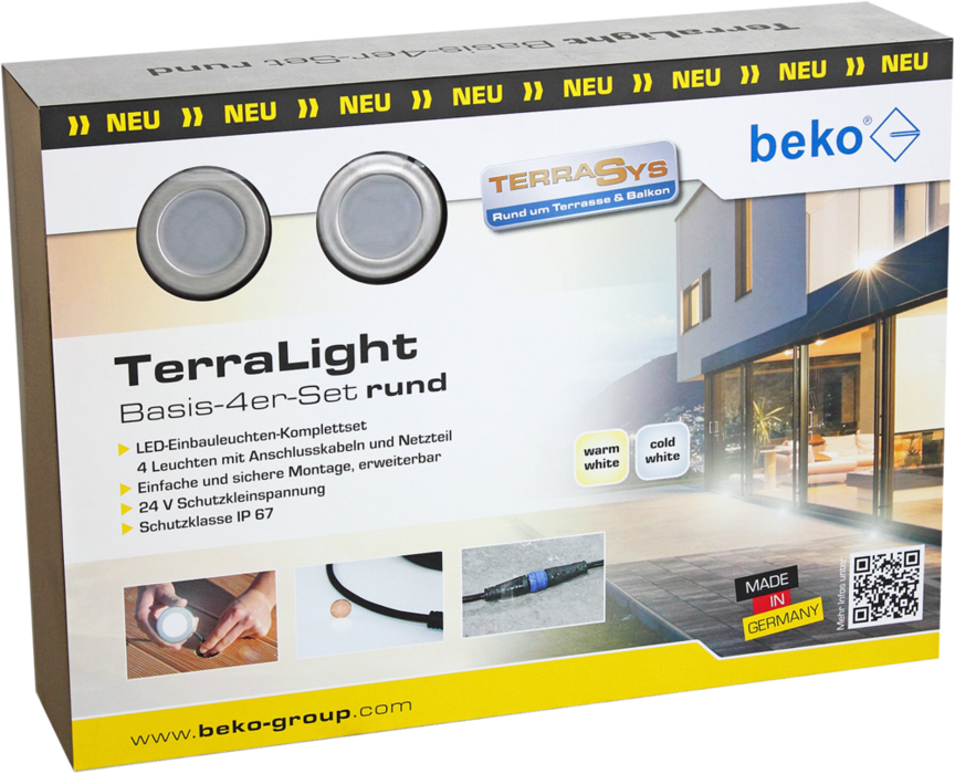 Diese Terrassenbeleuchtung ist die perfekte Ergänzung, um die Terrasse auch bei Nacht in eine Wohlfühloase zu verwandeln. Alle gängigen Terrassenbelägen wie Holz, WPC, und Feinsteinzeug können verbaut werden.