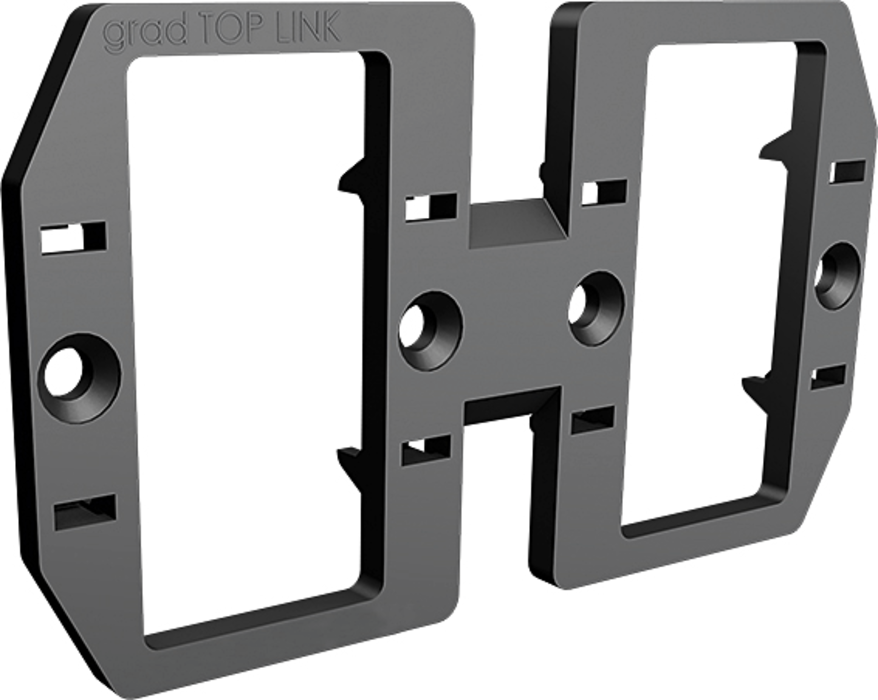 Der Top Link ist der Verbindungsteil zwischen zwei Schienen, mit dem der passende Abstand zwischen den verschiedenen Elementen (Schienen, Clips, Dielen) sichergestellt werden kann. Die Demontage an dieser Stelle bleibt weiterhin möglich.
