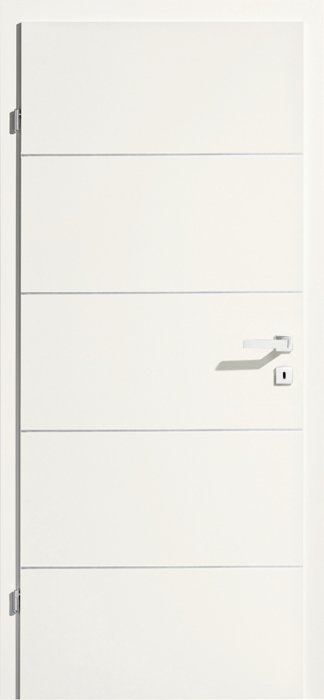 Eurowood CPL-Tür Weiss Röhrenspan Vollbau 4 Lisenen silber - links