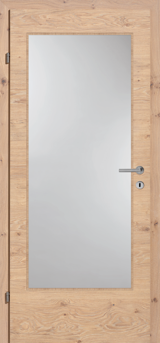 Eurowood Furniertür Asteiche gebürstet quer weiss geölt Röhrenspan mit Glaslichte (GA1) - links