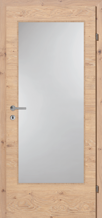 Eurowood Furniertür Asteiche gebürstet quer weiss geölt Röhrenspan mit Glaslichte (GA1) - rechts