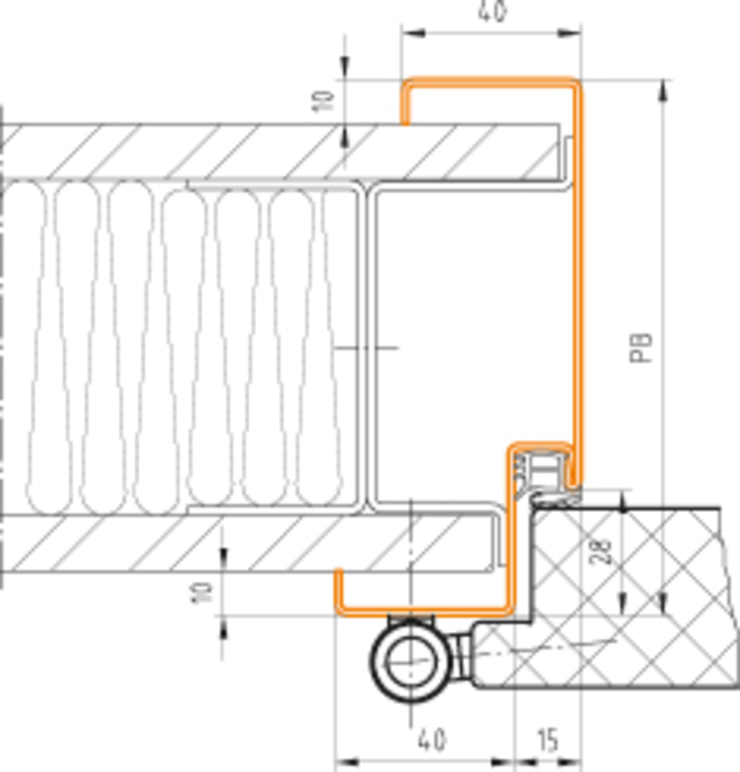 Schließöffnung für Drückerhöhe 1050 mm (ÖNORM-Form B) - an beiden Seitenteilen zum Ausbrechen der Öffnungen vorgestanzt